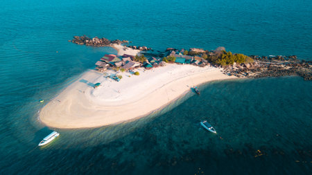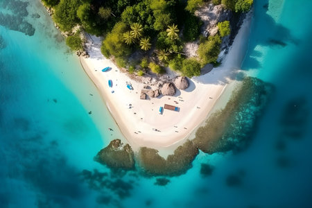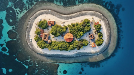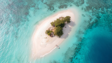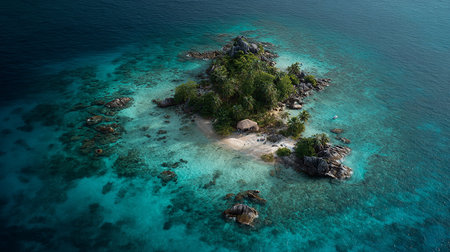 Aerial view of a secluded tropical island surrounded by crystal-clear waters