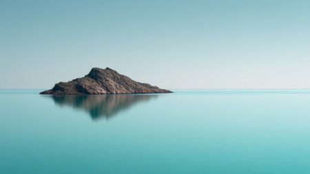 A tranquil scene showcasing an isolated island resting peacefully in calm waters beneath a clear sky, evoking feelings of serenity and simplicity in nature.