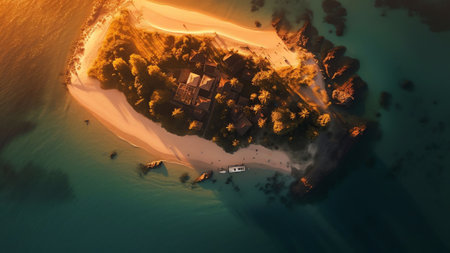 AI Generated. Aerial view of small island with clear turquoise water surrounding the land