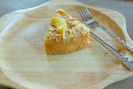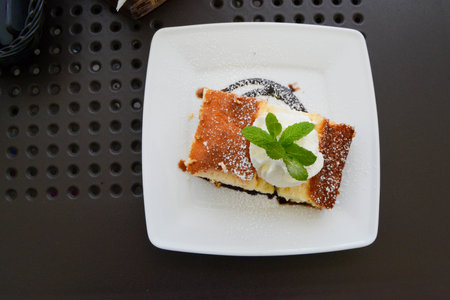 Dessert Sernik krakowski. On a wooden background. Top view. Copy space. High quality photo