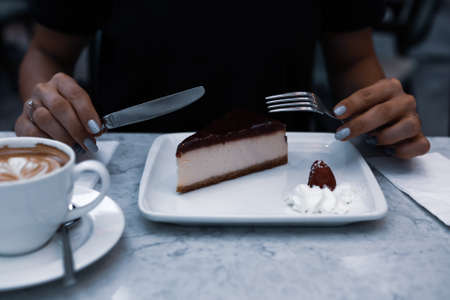 Homemade cheesecake with coffee and milk