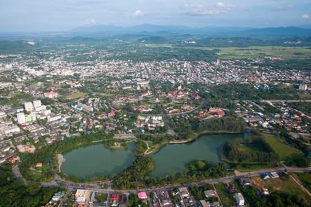 Top view of the city of Kota Kinabalu from the sea. Borneo, Sabah, Malaysia.