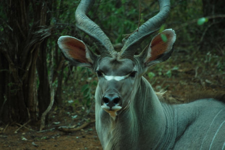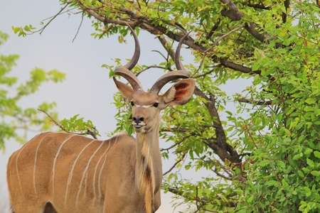 Large male kudu antelope with large ears and horns