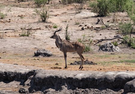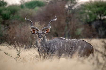 Buck kudu alert in wildlife nature outdoor safari reserve park in Africa