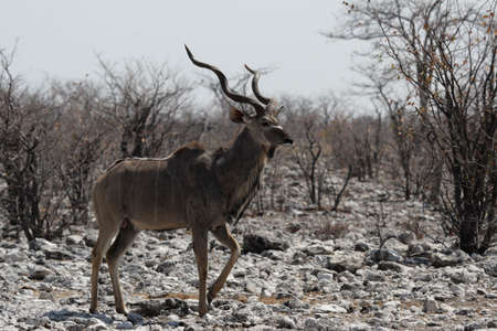 Beautiful male greater kudu (Tragelaphus strepsiceros) in Etosha National park in Namibia.