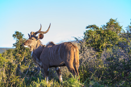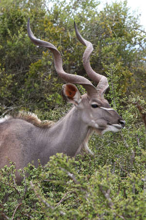 Kudu bull close-up amongst the bushes in Addo Elephant National Park