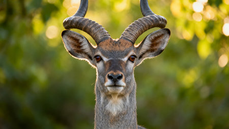 A closeup portrait of a female waterbuck (kobus ellipsiprymnus) in the Kruger National Park, South Africa.