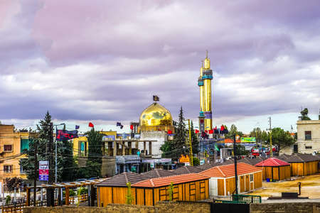 Baalbek Sayyida Khawla Shia Mosque Side View with Golden Minarets