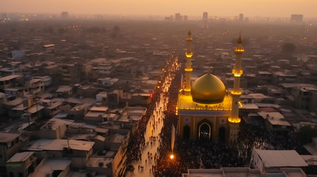 The Imam Reza Shrine in Mashhad, Iran, at Sunset A Glimpse of Islamic Architecture, Culture