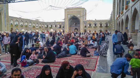 Shrine of Fatima Masumeh, Qom, Iran - May 2019: Visitors and worshippers inside of Shrine of Fatima Masumeh in Qom, which is considered by Shia Muslims to be the second most sacred city in Iran.
