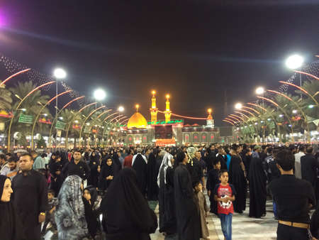 Karbala, Bagdad, Iraq, 06 09 2019: Imam Hossein's Shrine. The shrine of Prophet Abbas. Karbala and Tasoa. Walking in beinolharamein between Imam Hossein's Shrine and shrine of Prophet Abbas.