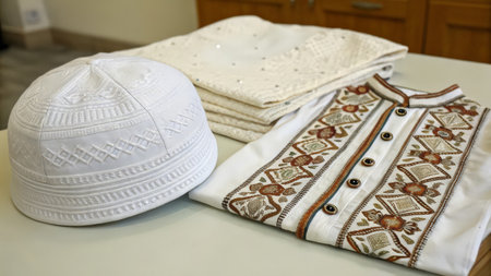 Black Islamic hat placed on the mats used in the ceremony.
