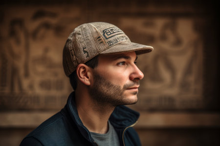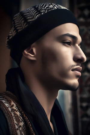 Portrait of a handsome young man wearing a cap and looking away