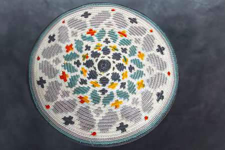 a close-up of a traditional kippah in different colors, created with generative ai