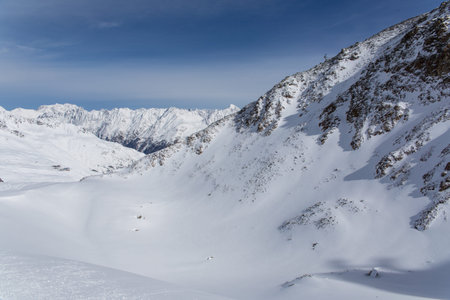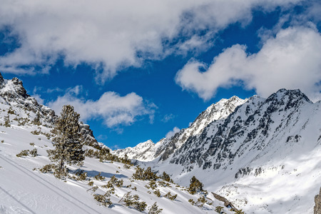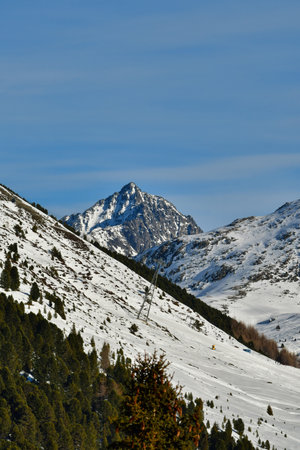 Snowy peak in Canfranc Valley, Pyrenees, Huesca, Aragon, Spain.