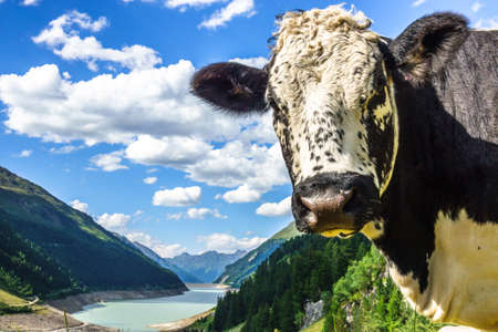 Kaunertal, AUSTRIA - August 13,2017: Cows study on information board on the