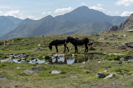 Horses in the Parc Natural de la Vall de Sorteny, Pyrenees, Andorra.