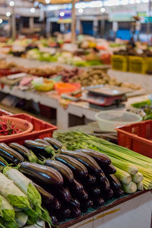 Fresh vegetables and fruits at local market in Sanya, Hainan province, China