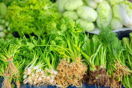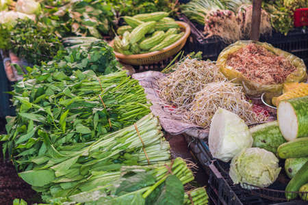 Greenery in the Vietnamese market. Asian cuisine concept.