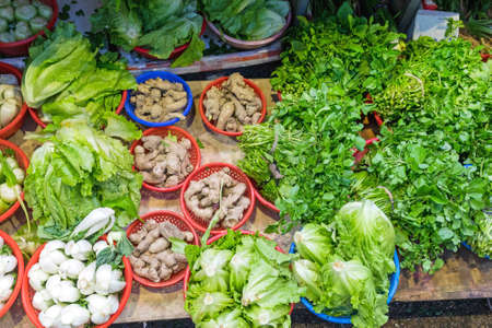 Mixed vegetables in local market in Thailand,mixed green asia vegetables