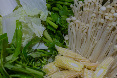 vegetable set for sukiyaki or shabu shabu, Japanese and Korean food