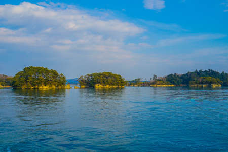 Asia travel concept - panoramic sea and blue sky and island view of Matsushima in Miyagi, Japan