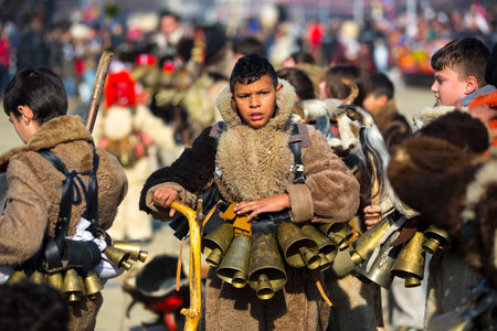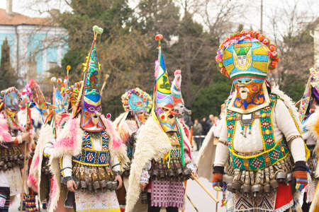 Participants take part in the International Festival of Masquerade Games Surva. The festival promotes variations of ancient Bulgarian and foreign customs and masks. Kukeri.
