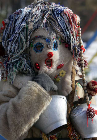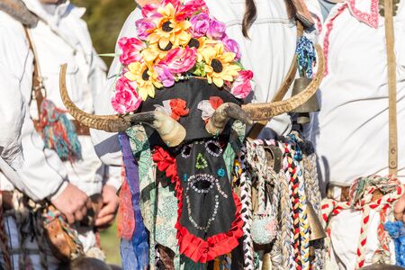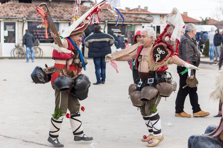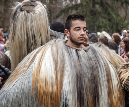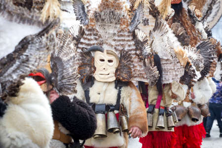 RAKOVSKI, BULGARIA - FEBRUARY 06, 2015 - Kukeri festival in Rakovski, Bulgaria. People dressed in different costumes dance and preform rituals to scare the evel spirits.