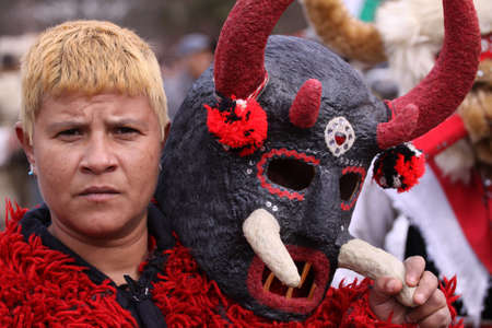 Bulgaria - jan 31, 2015: Woman in traditional masquerade costume is seen at the the International Festival of the Masquerade Games Surva in Pernik, Bulgaria. Photo taken on: January 31th, 2015