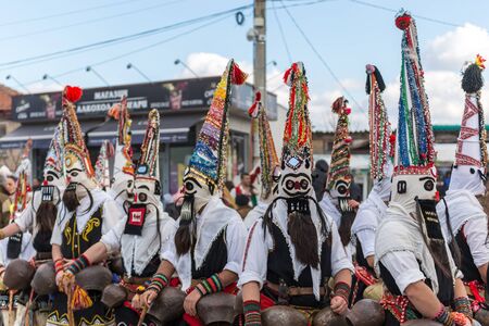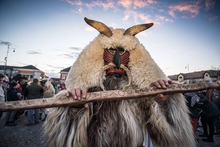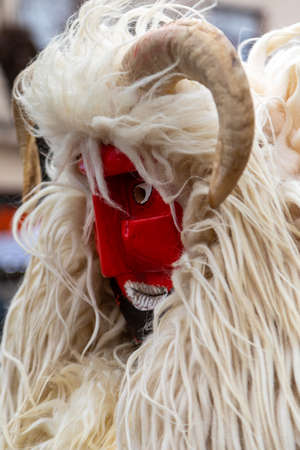 Pernik, Bulgaria - 28 January 2018: Participants take part in the International Festival of Masquerade Games Surva. The festival promotes variations of ancient Bulgarian and foreign customs and masks. Kukeri.
