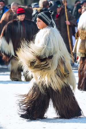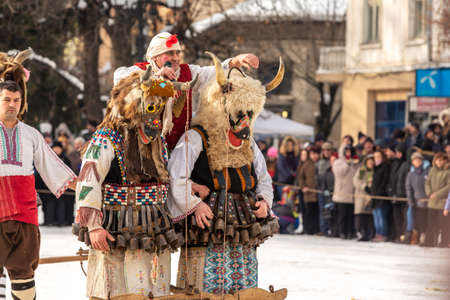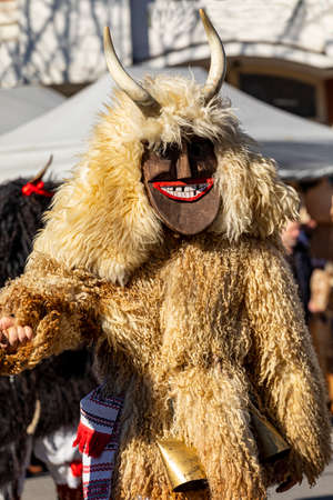 Razlog, Bulgaria - January 14, 2017: People in traditional carnival kuker costumes at Kukeri festival Starchevata