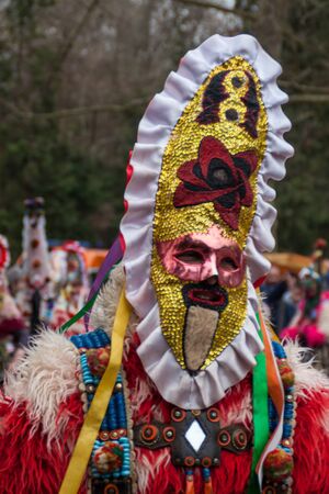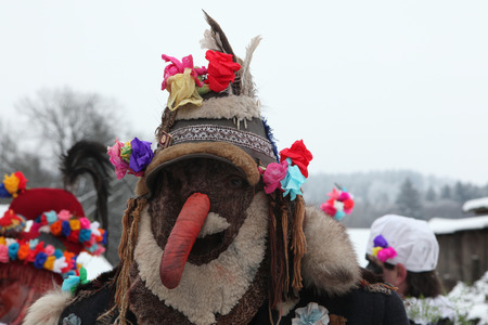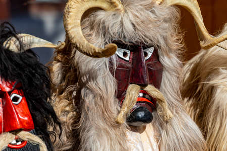 Kukeri traditional mask customs. Unique masquerade tradition from Bulgaria.