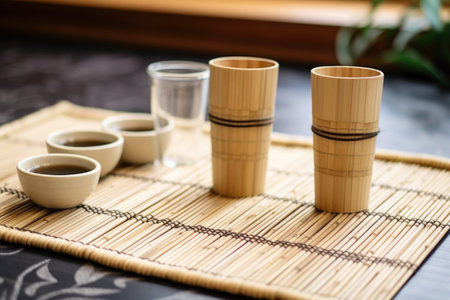 cupping set on a bamboo straw mat, created with generative ai