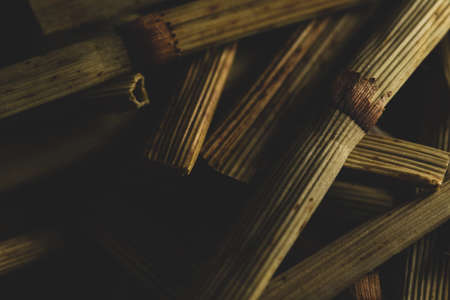 top view herb MiMaHuang or honey-fried Ephedra or Ephedra sinica stir-fried with honey at vertical composition