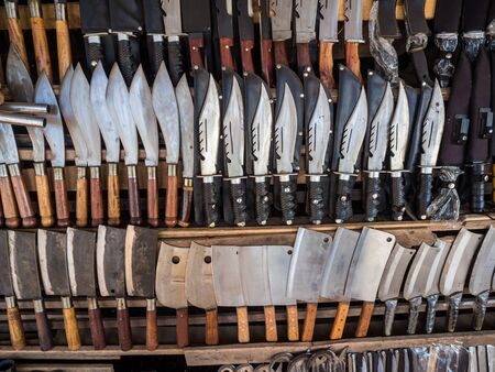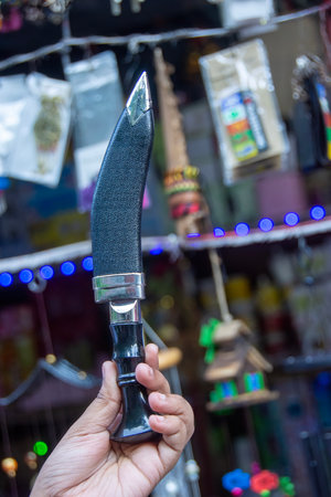 top view of traditional Nepali knife Kukri on outdoor concrete board
