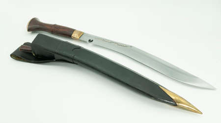 Kukri knife diagonal with wooden scabbard nepalese cold arms isolated