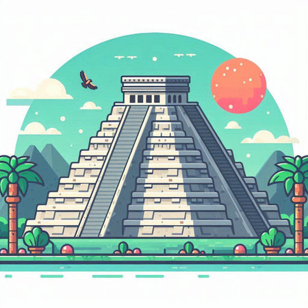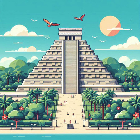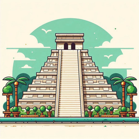 Ancient Mayan pyramid of Kukulkan in mexico. Vector illustration