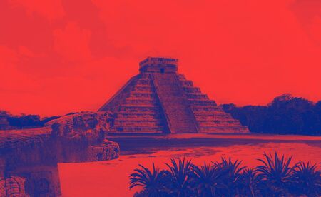 Travel Mexico background - Anicent Maya mayan pyramid El Castillo Kukulkan in Chichen-Itza, Mexico