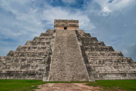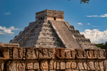 Great photo of the pyramid of Chichen Itza, Mayan civilization, one of the most visited archaeological sites in Mexico. About 1.2 million tourists visit the ruins every year.