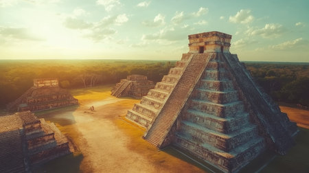 Stunning sunset over chichen itza pyramid in yucatan, mexico captivating ancient architecture