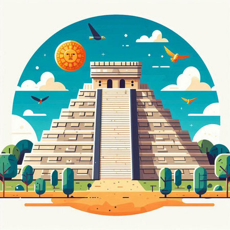 Pyramid of the Sun. Vector illustration in flat design style.