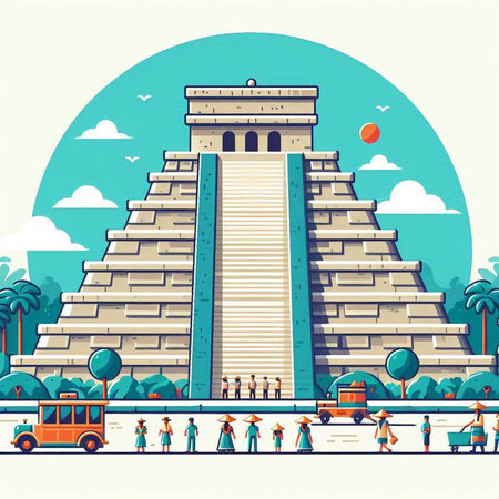 Chichen Itza temple in Mexico. Vector illustration in flat style