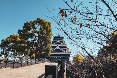 Scenic View of Kumamoto Castle, Famous Japanese Landmark and Cultural Heritage Site in Kyushu, Japan
