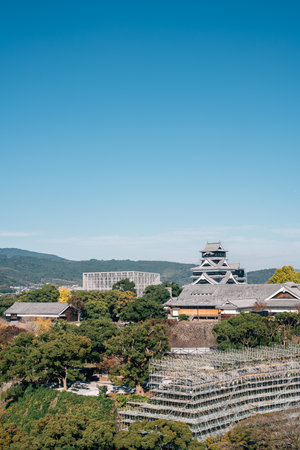 Kumamoto, Japan - November 23, 2024 : Autumn Panoramic View of Kumamoto Castle