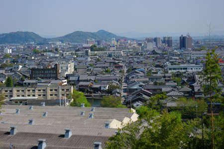 Matsuyama, Ehime prefecture, Japan - April 11, 2018: Panoramic view from the top of Matsuyama Castle, one of the 12 original castles of Japan
