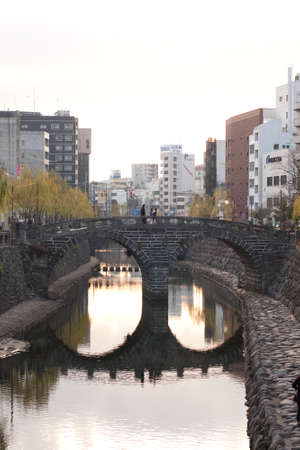 Canal at sunset with buildings reflected in the water, Fukuoka, Japan