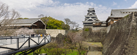Kumamoto Castle, exterior view, Kumamoto city, Chuo-ku, Kyushu island region, Japan, spring landscape view and blooming sakura cherry blossom, Kumamoto prefecture, travel to Japan, Japanese castle