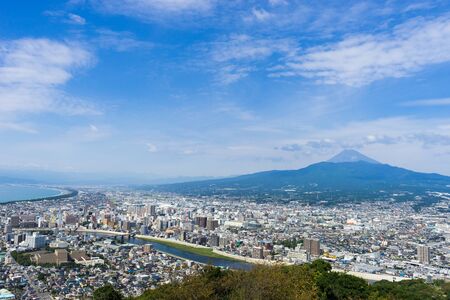 Aerial view of Shizuoka and Suruga bay on sunrise