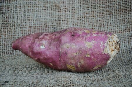 Sweet potato on sack for being cooking ingredient for make food or dessert