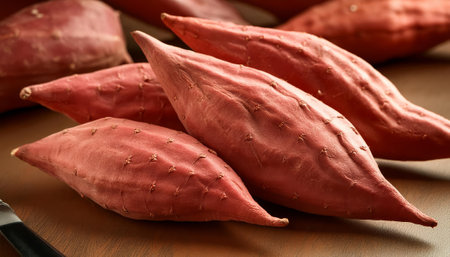 Sweet potato on wooden table